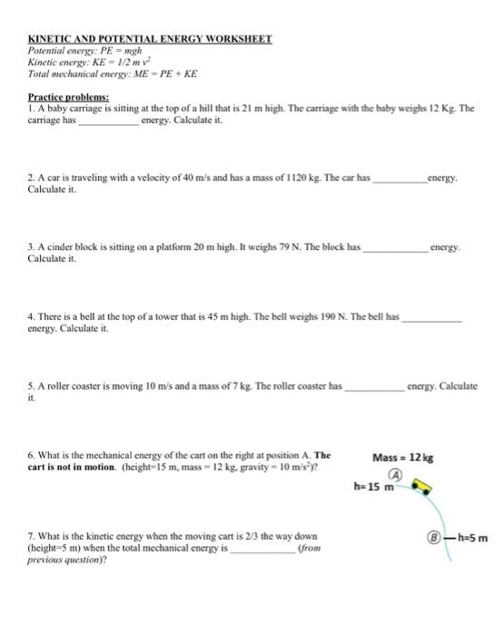 Kinetic and potential energy worksheet. You can download the pdf below,. Learn vocabulary, terms, and more with flashcards, games, and other study tools. Deb | free teaching activities, . We have prepared a list of worksheets on "kinetic or potential energy". Determine whether the objects in the following problems have kinetic or potential energy. Potential or kinetic energy worksheet work energy and power, kinetic and potential energy, kinetic. Kinetic energy can be defined as. Start studying kinetic and potential energy worksheet. The two factors that determine the amount of kinetic energy are (see equation above). What is the kinetic energy of a 150 kg object that is moving with a speed of 15 m/s? The formula for calculating kinetic energy is. The equation to be used to calculate kinetic energy ( ek) is.